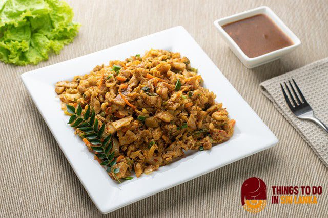 One of the best street food items equally visible during the mornings and nights is hoppers and egg hoppers. Not only in Colombo, Hoppers and egg hoppers are famous Sri Lankan cuisine all around the country. There is no way you can miss out on this authentic Sri Lankan cuisine. This is made by mixing rice flour and coconut milk into a light pancake batter. The batter is continuously stirred before pouring a spoonful of batter into small deep-bottomed pans to be cooked. The crunch at the edges of the hoppers brings in that extra pinch of magic into this. The plain spiral pancakes are known as hoppers, while for an egg hopper, an egg is cracked onto the middle of the hopper. Usually, hoppers are served with some Lunu miris (a spicy mixture made out of chilli and onions) or a spicy fish or chicken curry. However, a hopper without any side dishes even makes a nice snack during the evenings.
